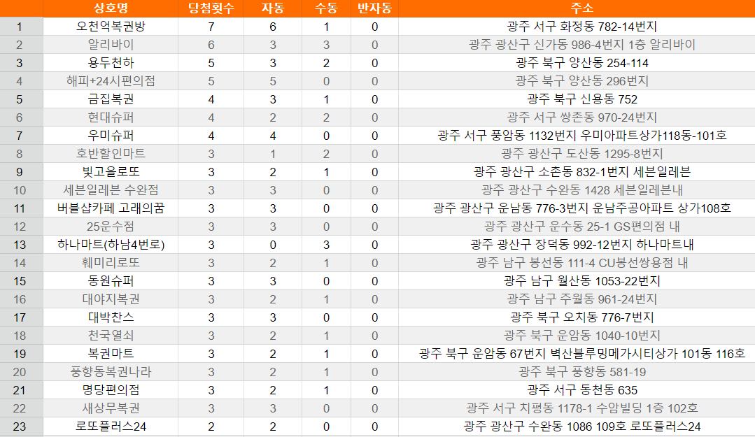 광주 로또 복권 명당 리스트